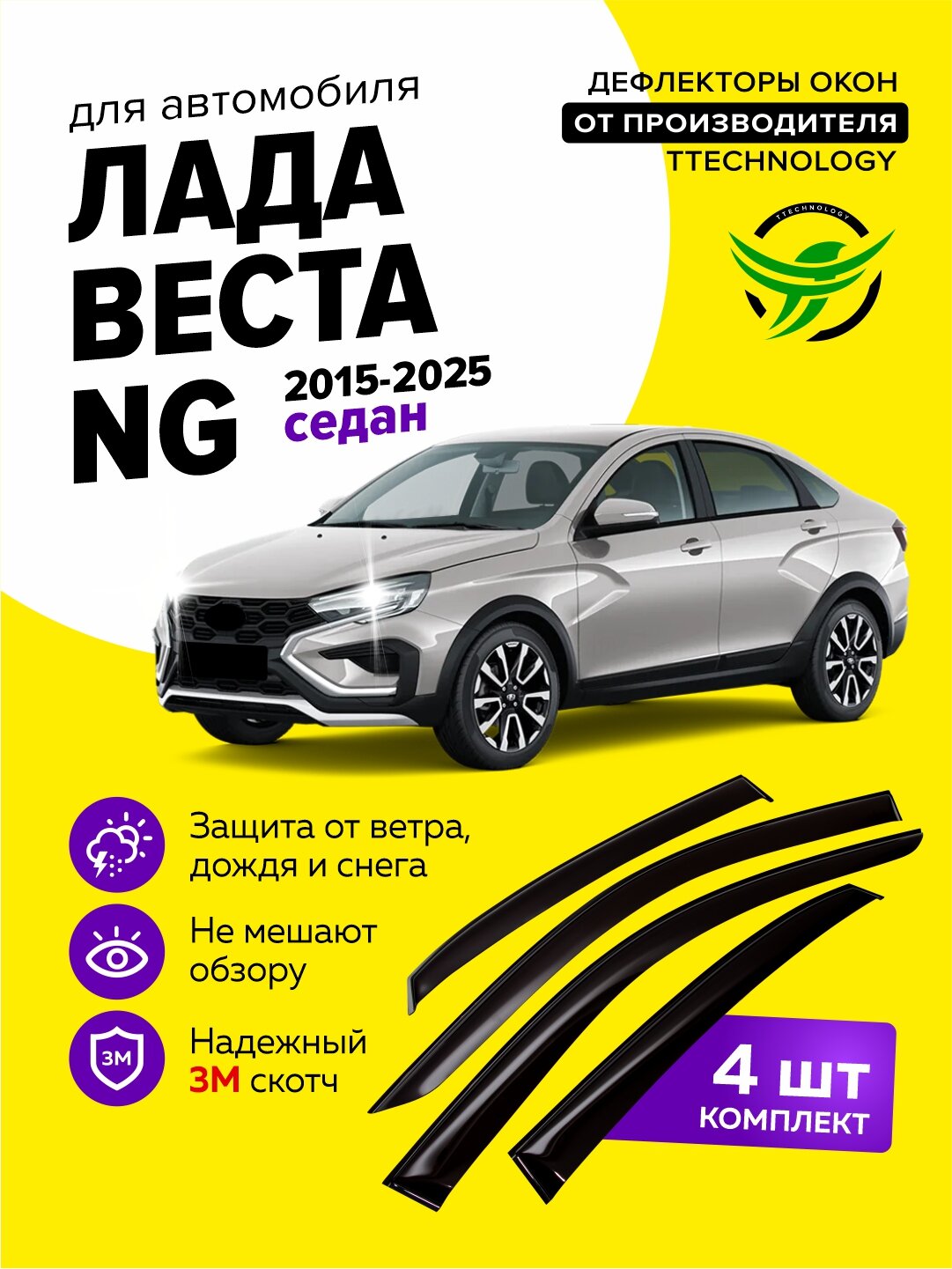 Дефлекторы боковых окон для Лада Веста седан (Lada Vesta) 2015-2024, 2025 (NG, НГ) ветровики на двери автомобиля, ТТ: сравнение цен, характеристики, фото, актуальное наличие и цены.