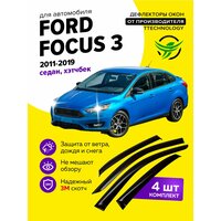Дефлекторы боковых окон Ford Focus 3 (Форд Фокус) 2011-2019, седан, хэтчбек, ветровики на двери автомобиля, ТТ: сравнение цен, характеристики, фото, актуальное наличие и цены.