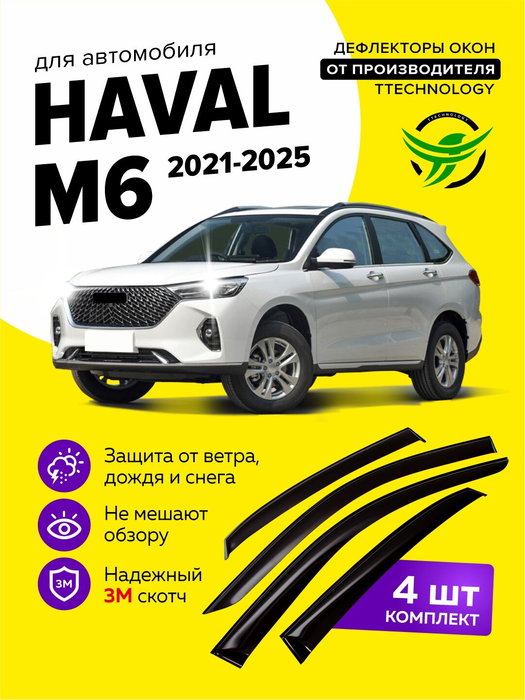 Купить Дефлекторы боковых окон Haval M6 (Хавал М6) 2021, 2022, 2023, 2024, 2025 год, ветровики на двери автомобиля, ТТ с доставкой по всей России.