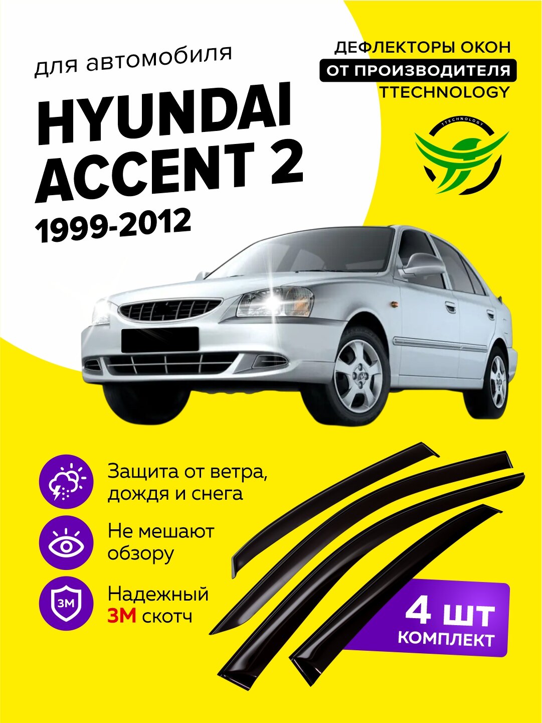 Дефлекторы боковых окон Hyundai Accent 2 (Хендай, Хендэ, Хундай Акцент) 1999-2012, ветровики на двери автомобиля, ТТ: сравнение цен, характеристики, фото, актуальное наличие и цены.