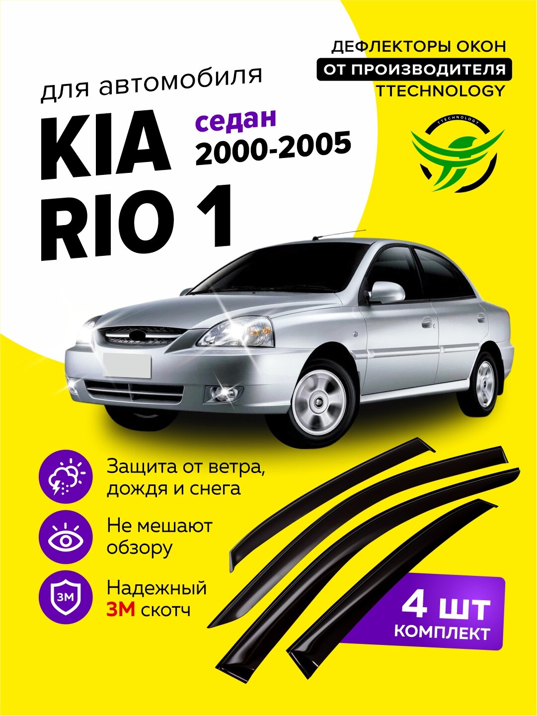 Дефлекторы боковых окон Kia Rio 1 (Киа Рио) седан 2000-2005, ветровики на двери автомобиля, ТТ: сравнение цен, характеристики, фото, актуальное наличие и цены.