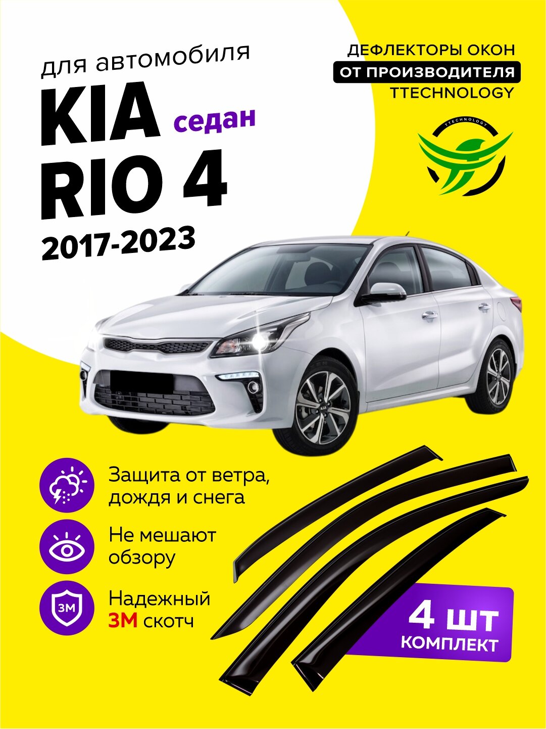 Купить Дефлекторы боковых окон Kia Rio 4 (Киа Рио) седан 2017-2023, ветровики на двери автомобиля, ТТ с доставкой по всей России.