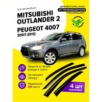 Купить Дефлекторы боковых окон Mitsubishi Outlander 2, XL (Митсубиси Аутлендер), Peugeot (Пежо) 4007 2007-2012, ветровики на двери автомобиля, ТТ с доставкой по всей России.