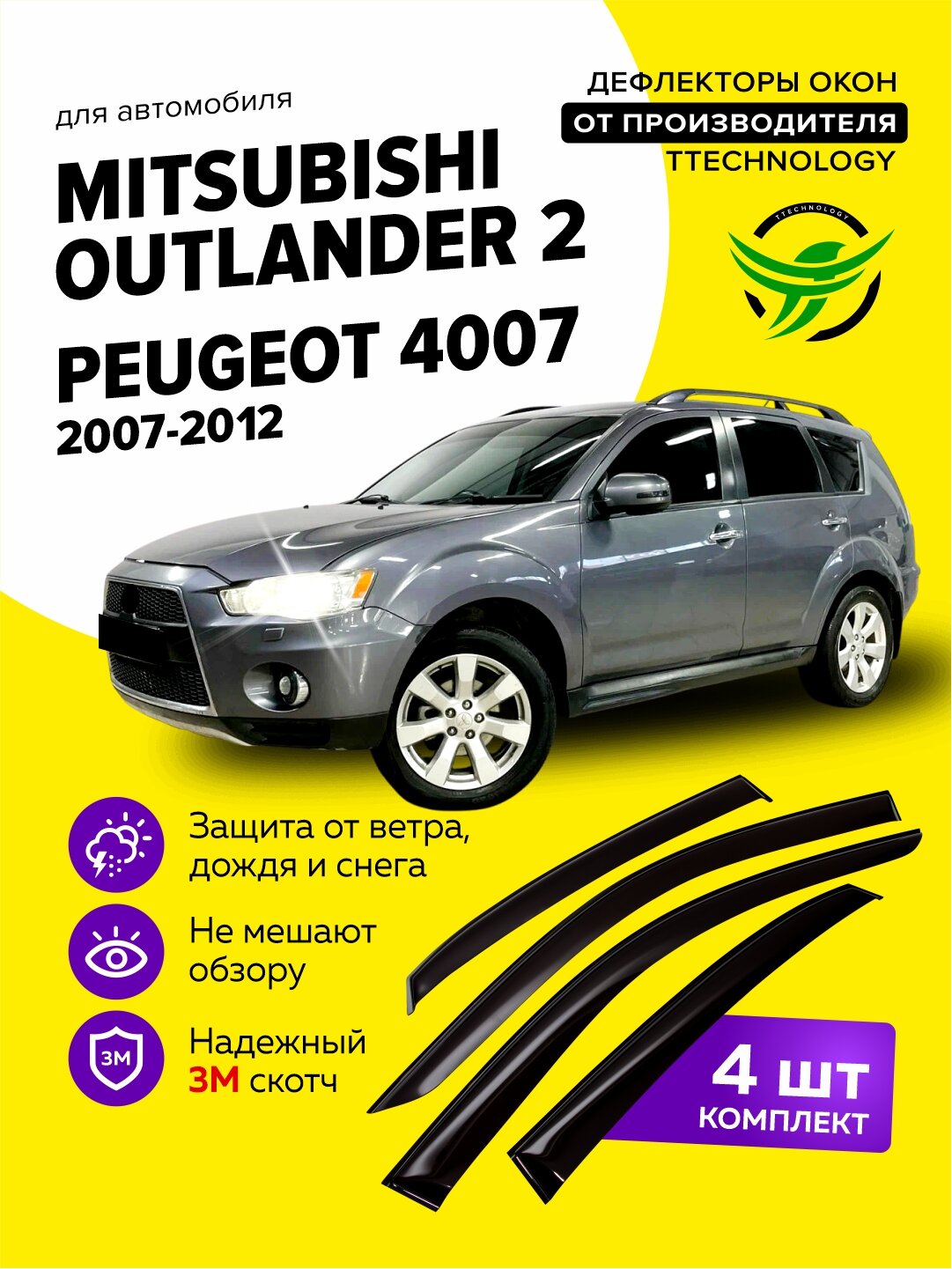 Дефлекторы боковых окон Mitsubishi Outlander 2, XL (Митсубиси Аутлендер), Peugeot (Пежо) 4007 2007-2012, ветровики на двери автомобиля, ТТ: сравнение цен, характеристики, фото, актуальное наличие и цены.
