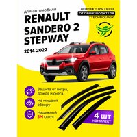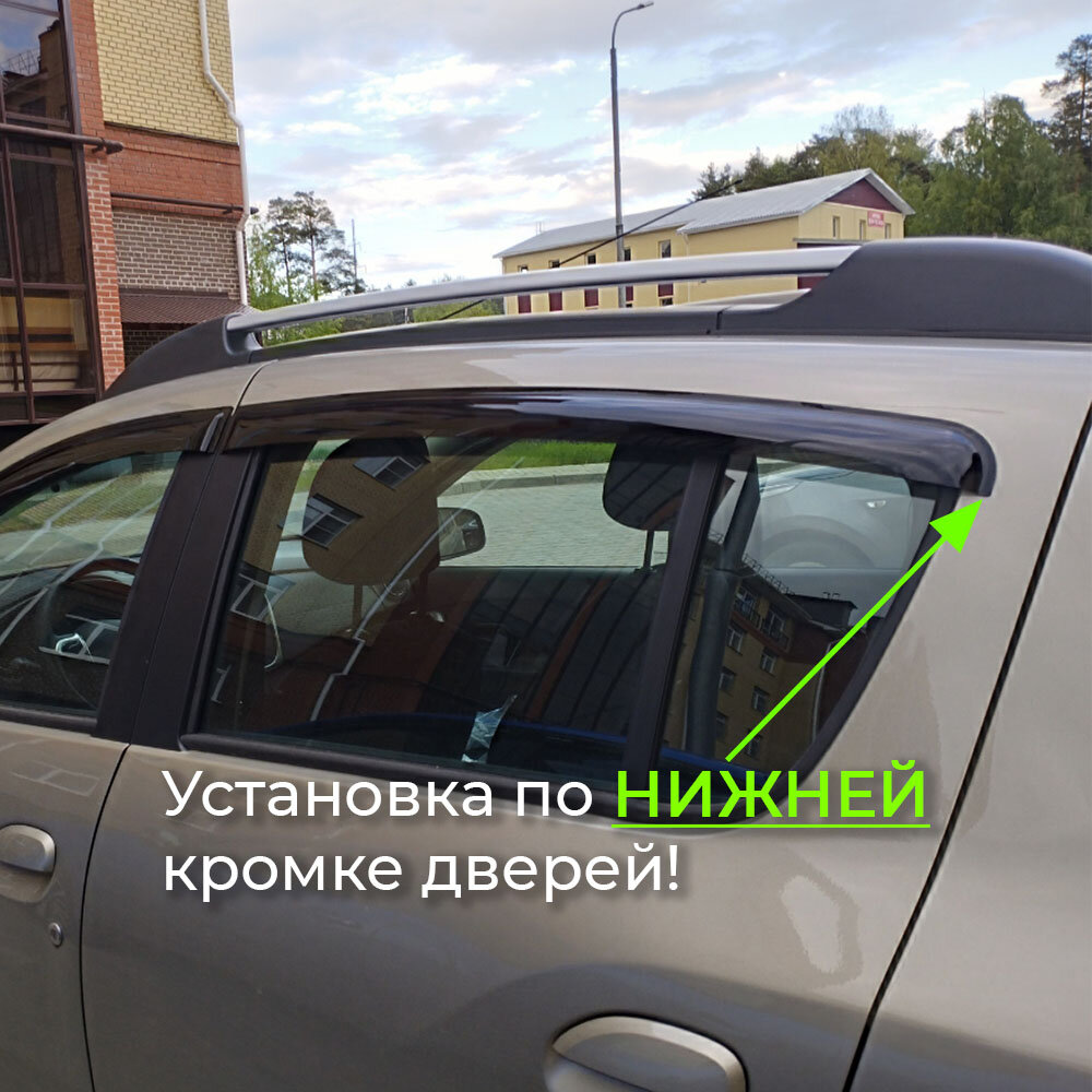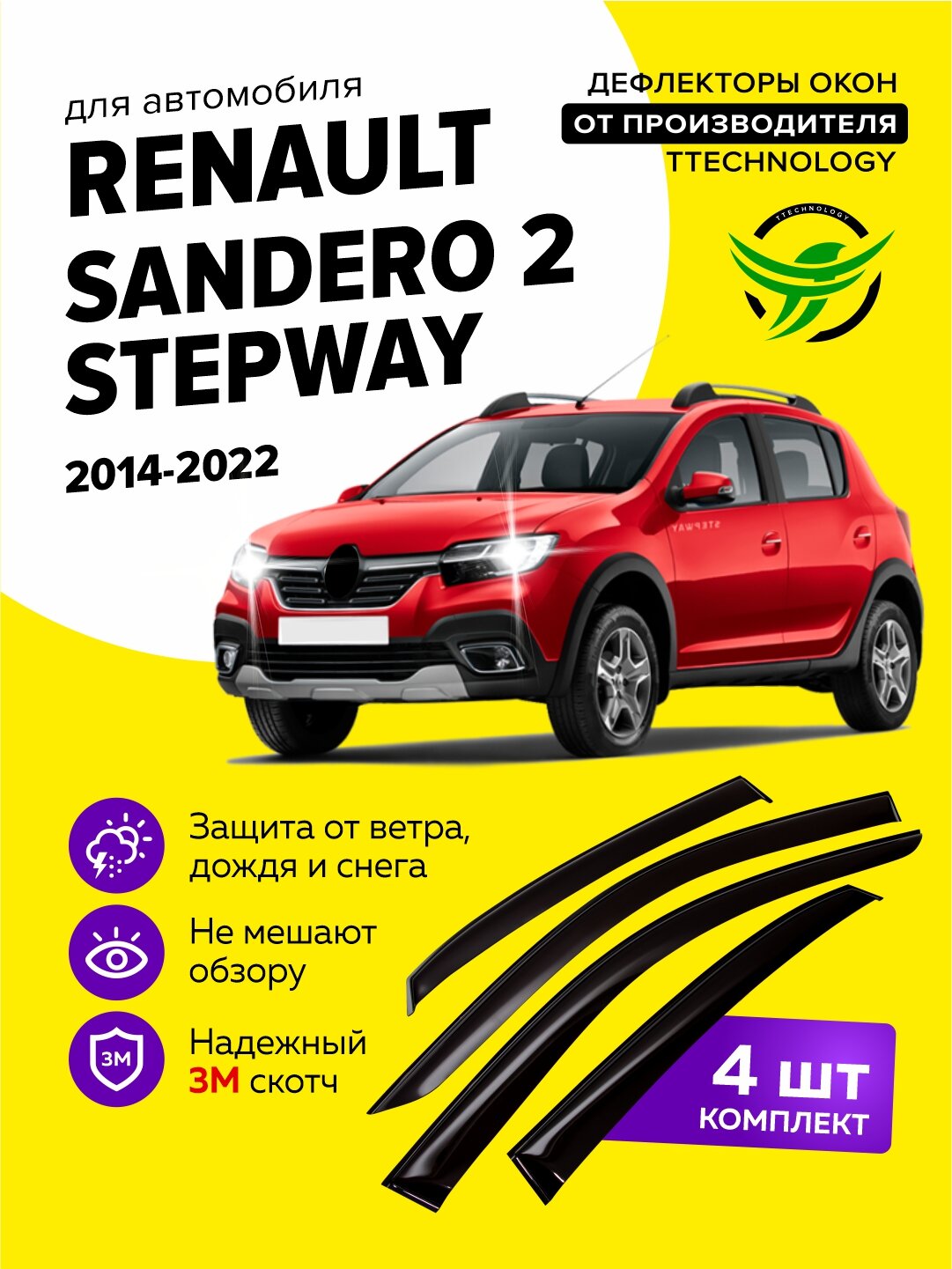 Дефлекторы боковых окон Renault Sandero 2, Stepway (Рено Сандеро, Степвей) 2014-2022, ветровики на двери автомобиля, ТТ: сравнение цен, характеристики, фото, актуальное наличие и цены.