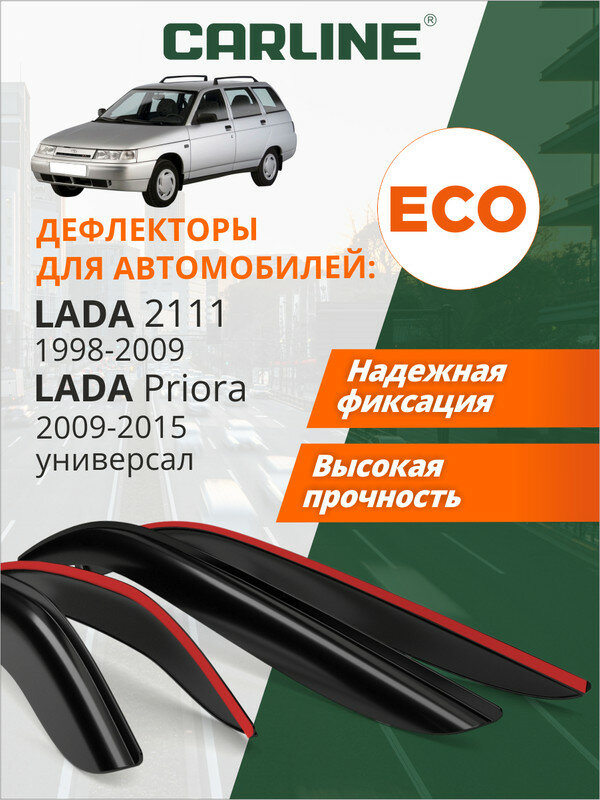 Купить Дефлекторы CARLINE Eco Лада ВАЗ 2111 (1998-2009 г. в.), Лада Приора 2009-2015 г. в, ветровики, универсал, нак, 4шт с доставкой по всей России.