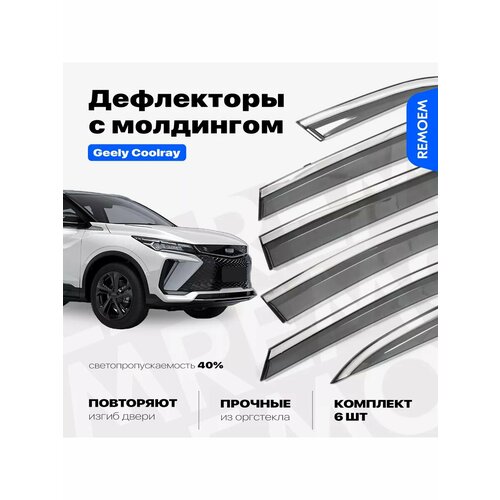 Купить Дефлекторы для Geely Coolray, Belgee x50, SX11 (2018-2024) ветровики с хром молдингом 18 мм, 6 шт Remoem / Джили Кулрей, Белджи х50 с доставкой по всей России. Дефлекторы для Geely Coolray, Belgee x50, SX11 (2018-2024) ветровики с хром молдингом 18 мм, 6 шт Remoem / Джили Кулрей, Белджи х50: сравнение цен, характеристики, фото, актуальное наличие и цены.