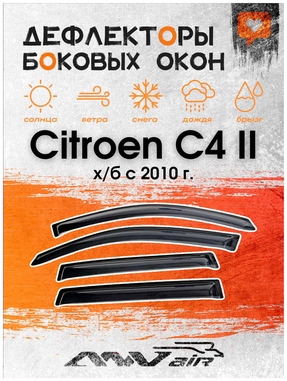 Купить Дефлекторы на боковые окна на Citroen C4 II х/б с 2010 г. / Ветровики на Ситроен С4 II х/б с 2010 г. с доставкой по всей России.