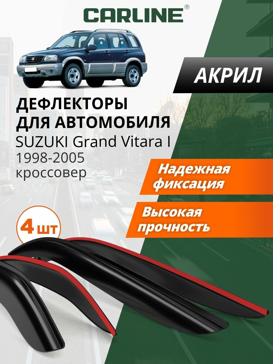 Купить Дефлекторы окон Carline для Suzuki Grand Vitara 1. Ветровики на Сузуки Гранд Витара 1 внедорожник (1998-2005 г. в.), накладные, 4 шт, акрил с доставкой по всей России. Дефлекторы окон Carline для Suzuki Grand Vitara 1. Ветровики на Сузуки Гранд Витара 1 внедорожник (1998-2005 г. в.), накладные, 4 шт, акрил: сравнение цен, характеристики, фото, актуальное наличие и цены.