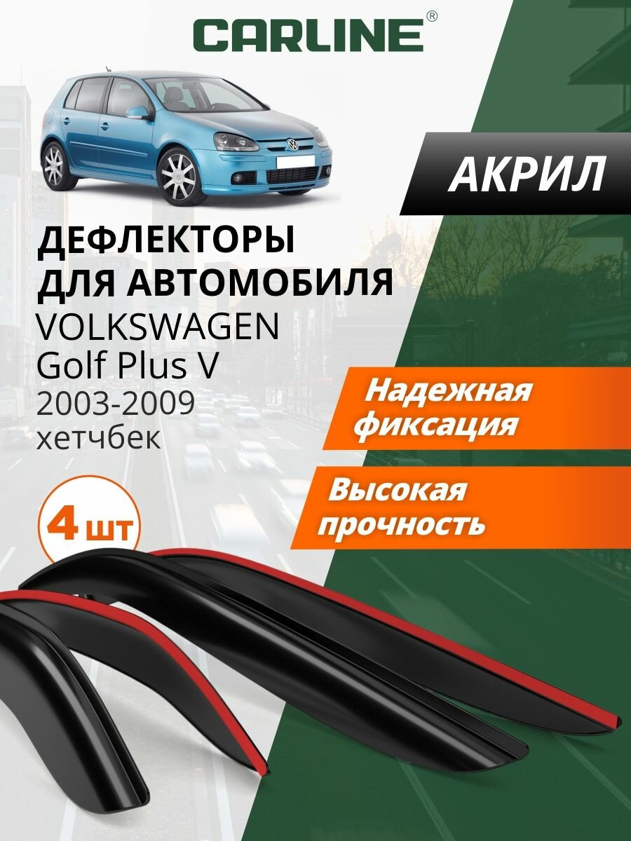 Купить Дефлекторы окон Carline для Volkswagen Golf Plus 5 хетчбек. Ветровики на Фольксваген Гольф Плюс 5 хетчбек 2003-2009, накладные, 4 шт, акрил с доставкой по всей России. Дефлекторы окон Carline для Volkswagen Golf Plus 5 хетчбек. Ветровики на Фольксваген Гольф Плюс 5 хетчбек 2003-2009, накладные, 4 шт, акрил: сравнение цен, характеристики, фото, актуальное наличие и цены.