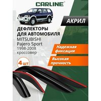 Купить Дефлекторы окон Carline Mitsubishi Pajero Sport 1, ветровики Митсубиси Паджеро Спорт 1 (1998-2008), накладные, 4 шт, акрил с доставкой по всей России. Дефлекторы окон Carline Mitsubishi Pajero Sport 1, ветровики Митсубиси Паджеро Спорт 1 (1998-2008), накладные, 4 шт, акрил: сравнение цен, характеристики, фото, актуальное наличие и цены.