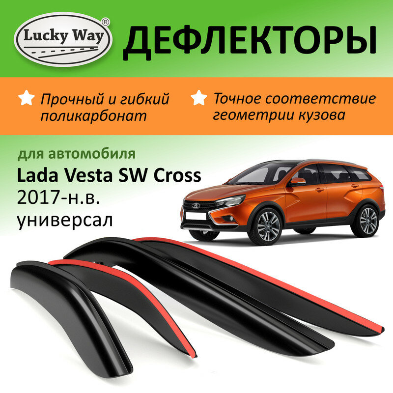 Дефлекторы окон Lucky Way Lada Vesta SW/SW Cross (Лада Веста СВ/СВ Кросс) 2017-н. в. универсал, накладные, 4шт: сравнение цен, характеристики, фото, актуальное наличие и цены.
