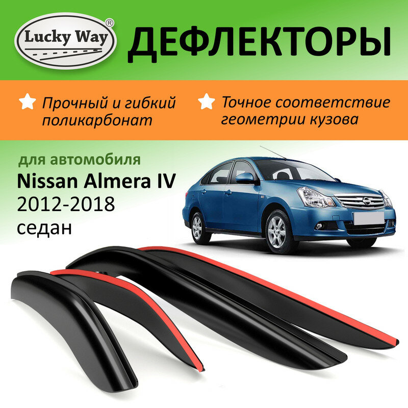 Дефлекторы окон Lucky Way Nissan Almera 3 G15 (Ниссан Альмера 3 G15) 2012-2018 г. в, седан, накладные, 4 шт.: сравнение цен, характеристики, фото, актуальное наличие и цены.