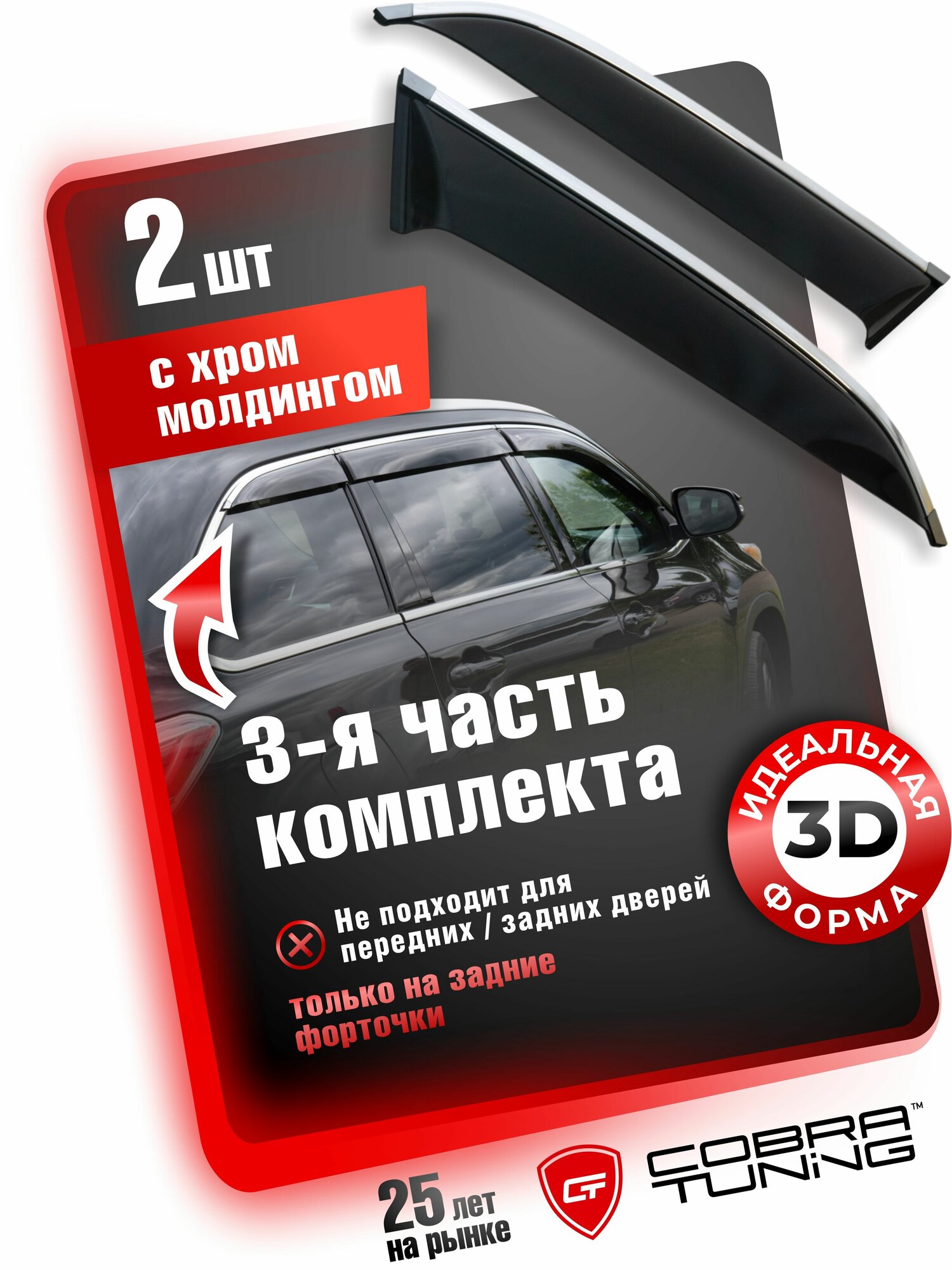 Дефлекторы окон на задние форточки для Kaiyi X3 и X3 Pro (Каи Х3, Про) 2020-2024, 2025 ветровики с хром молдингом, комплект уголков, 2 части, ветровики Кобра Тюнинг