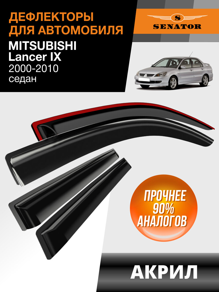 Дефлекторы окон Senator для Mitsubishi Lancer IX 2003-2006 /седан накладные 4 шт.: сравнение цен, характеристики, фото, актуальное наличие и цены.