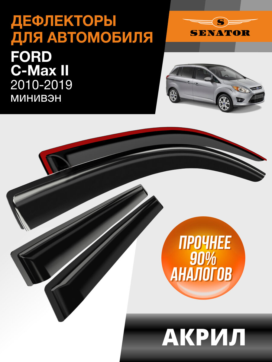 Купить Дефлекторы окон Senator Ford C-Max 2, ветровики Форд С Макс 2 (2010-2019) минивэн, накладные, 4 шт, акрил с доставкой по всей России. Дефлекторы окон Senator Ford C-Max 2, ветровики Форд С Макс 2 (2010-2019) минивэн, накладные, 4 шт, акрил: сравнение цен, характеристики, фото, актуальное наличие и цены.