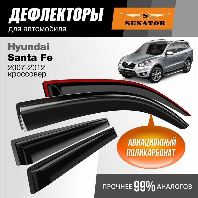 Дефлекторы окон Senator Hyundai Sante Fe 2 (Хендай Санта Фе 2) 2007-2012 г. в, кроссовер, накладные, 4шт: сравнение цен, характеристики, фото, актуальное наличие и цены.