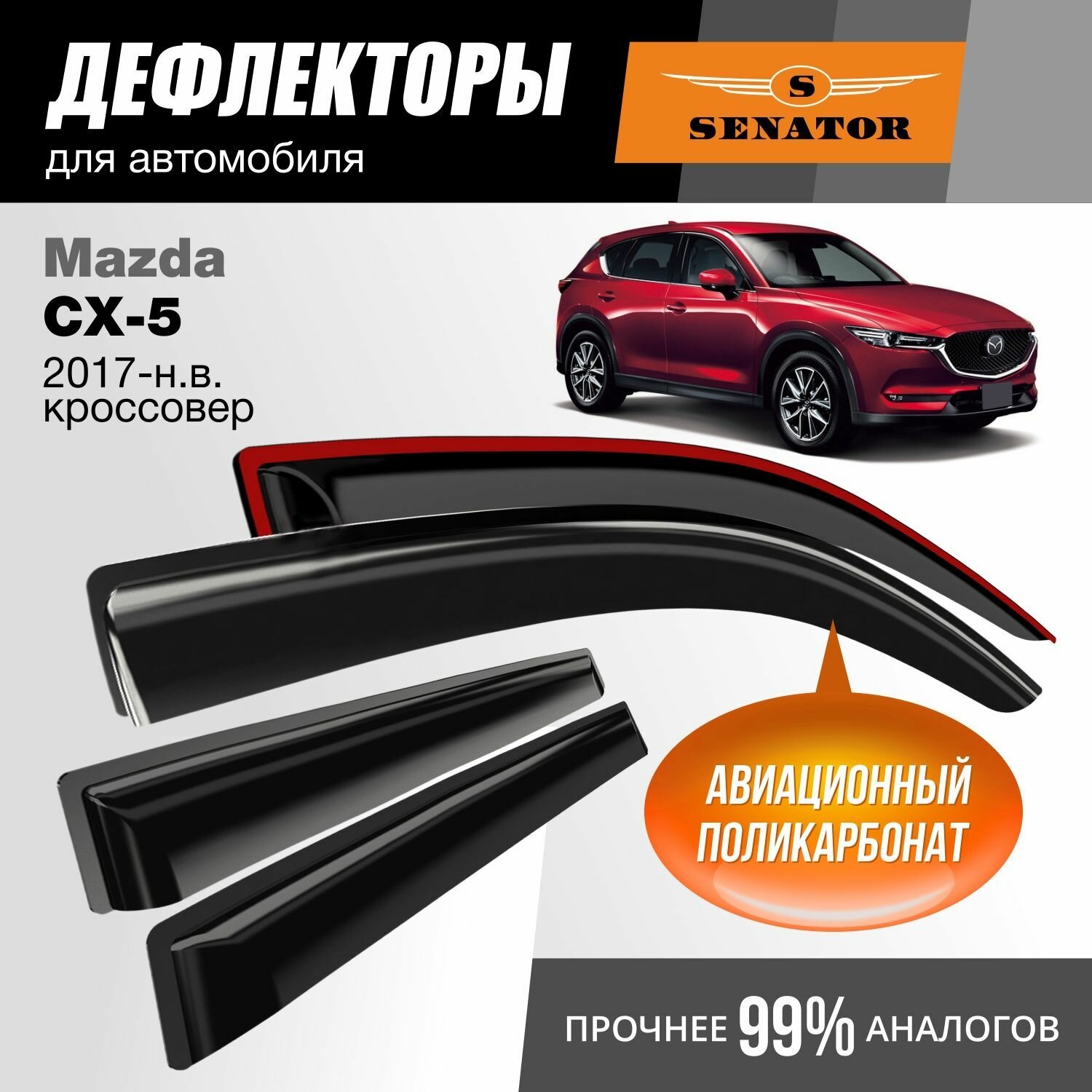 Купить Дефлекторы окон Senator Mazda CX-5 2017-н. в. кроссовер, накладные, 4шт с доставкой по всей России.