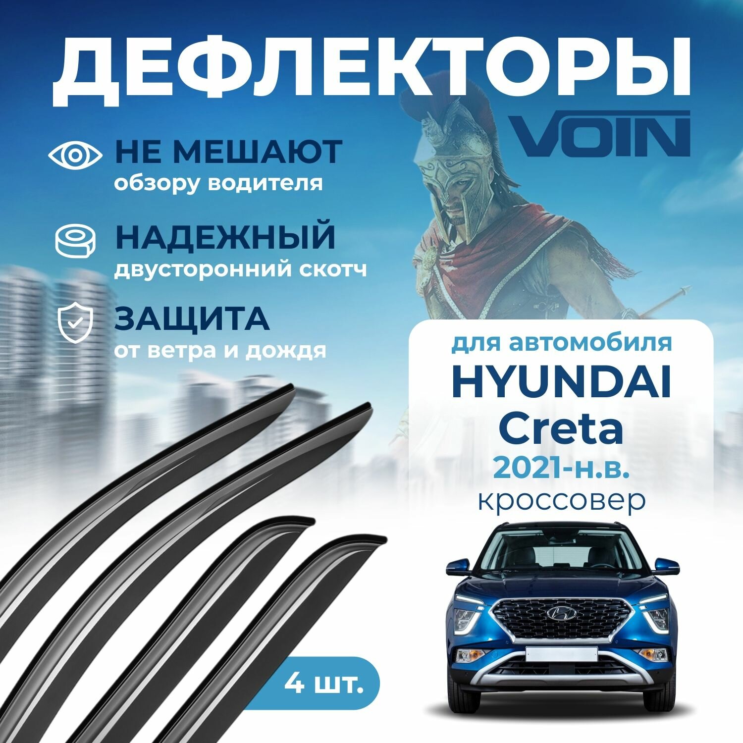 Дефлекторы окон Voin на автомобиль Hyundai Creta 2021-н. в. /кроссовер/накладные 4 шт: сравнение цен, характеристики, фото, актуальное наличие и цены.