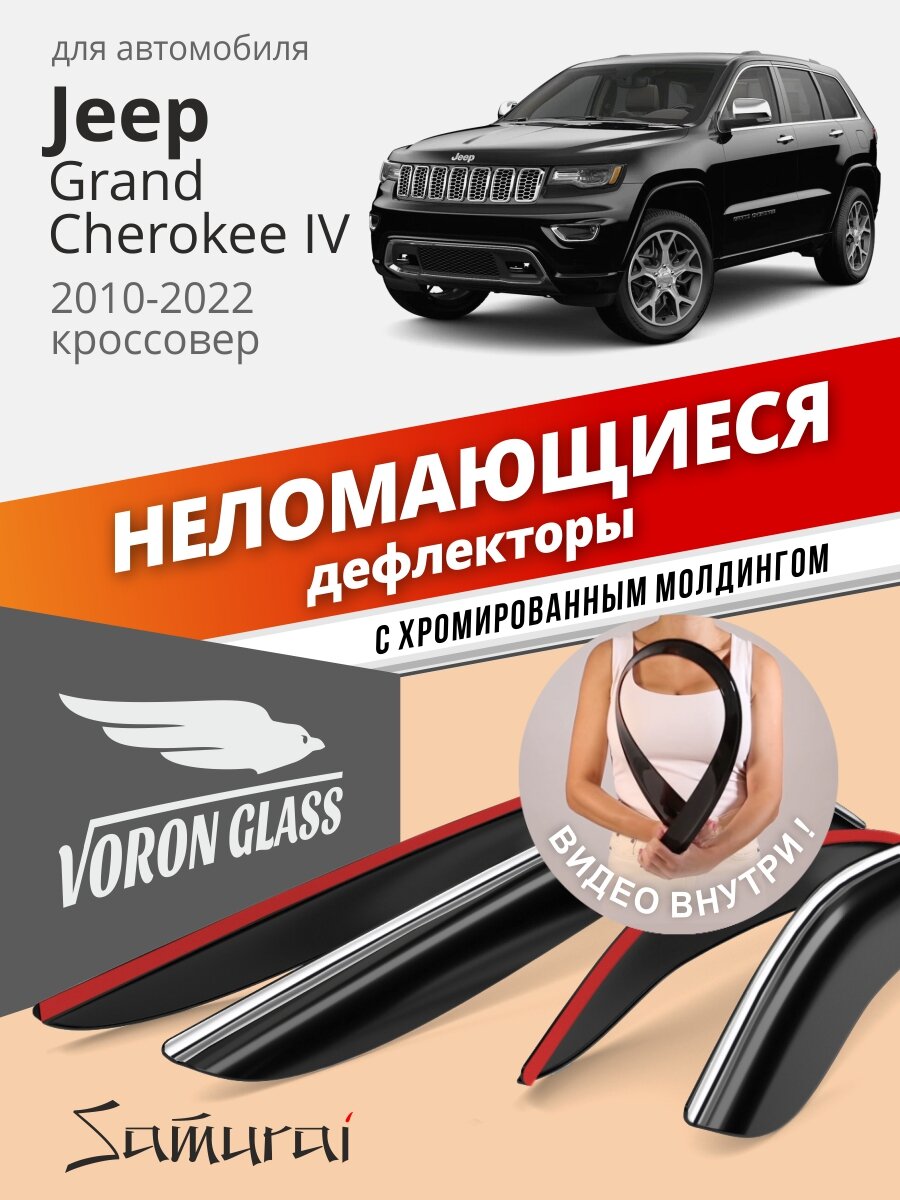 Купить Дефлекторы Voron Glass Jeep Grand Cherokee 4 2010-2022 г. в. кроссовер, хром молдинг с доставкой по всей России.