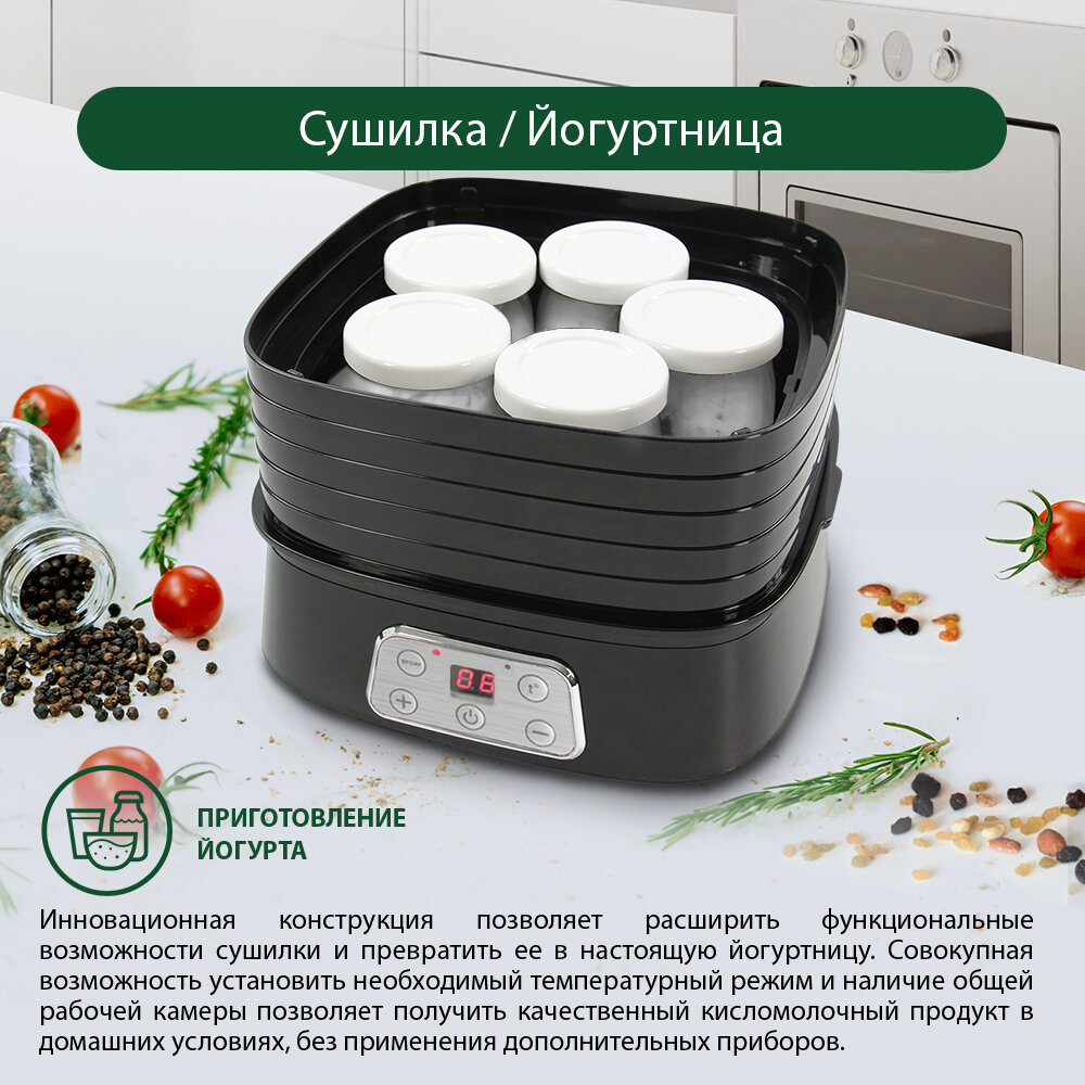 Купить Дегидратор сушилка для овощей электросушилка MARTA MT-1947 йогуртница 5 поддонов черный жемчуг с доставкой по всей России.