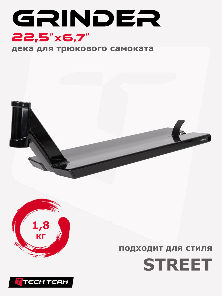 Купить Дека для самоката Tech Team Grinder 22,5″х6,7″ (570х170 мм) чёрная с доставкой по всей России.