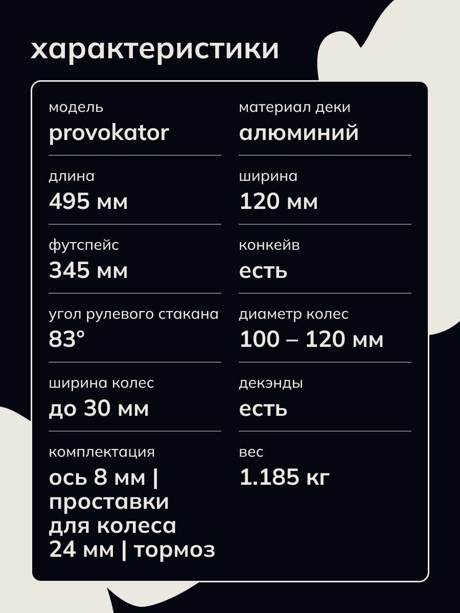 Не важно, готовитесь ли вы к соревнованиям или просто катаетесь ради удовольствия, эта дека станет вашим надежным спутником. Дополните свой трюковый самокат стильными и функциональными аксессуарами, чтобы ваш комплект отражал ваше мастерство и уникальный стиль.
