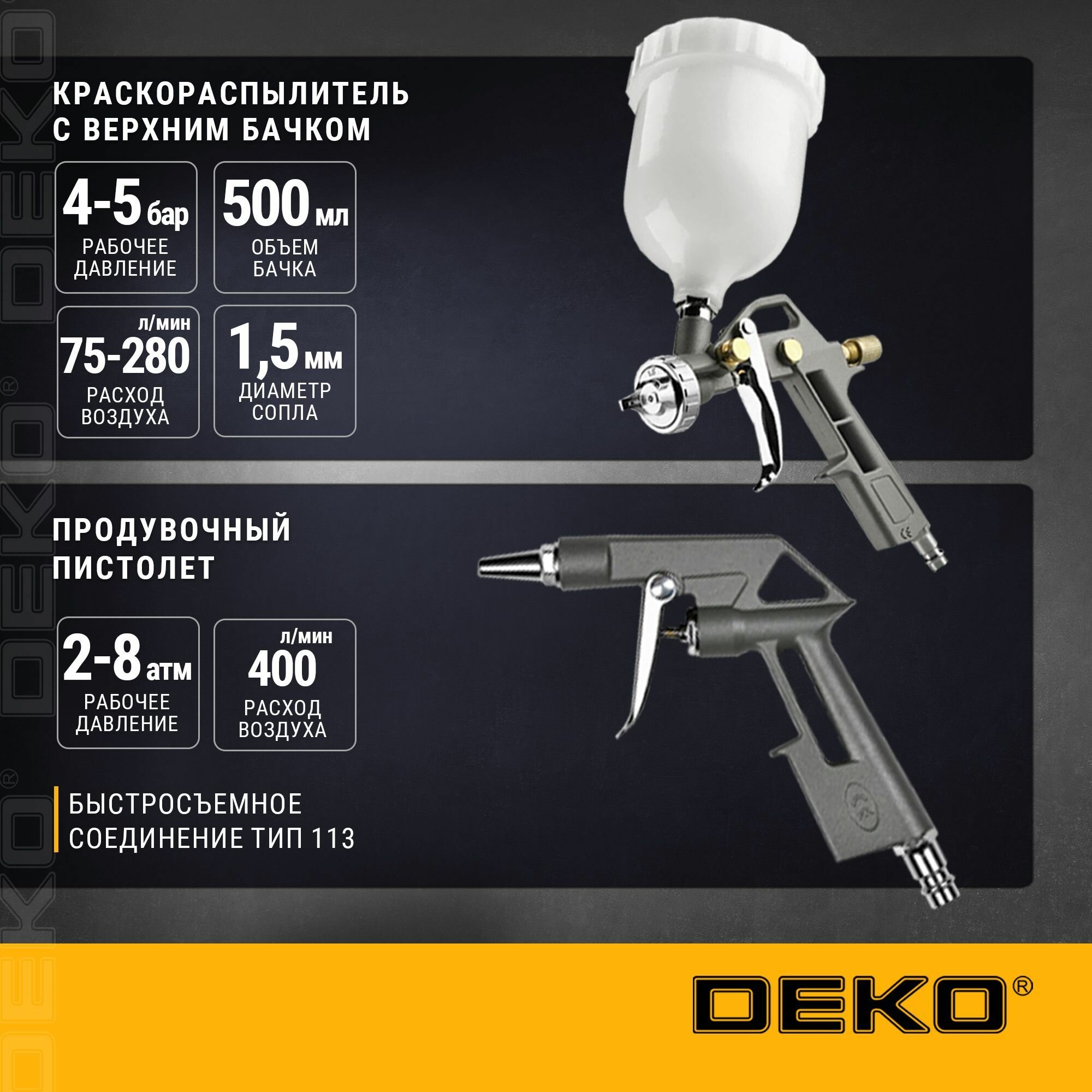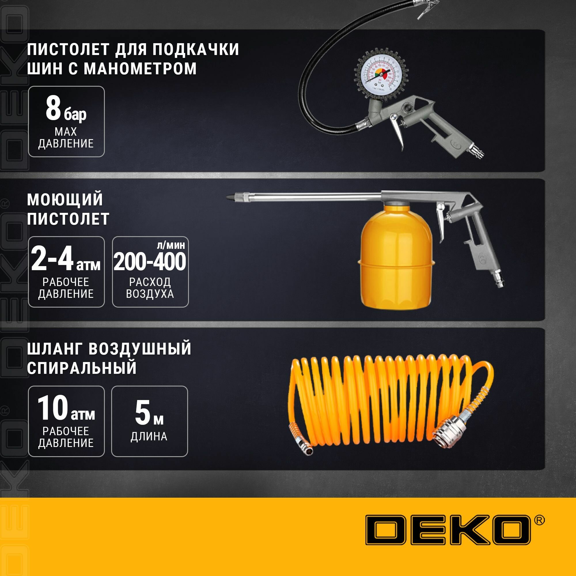 Купить Набор пневмоинструмента Deko DKSG05, 5 предметов с доставкой по всей России. Набор пневмоинструмента Deko DKSG05, 5 предметов: сравнение цен, характеристики, фото, актуальное наличие и цены.