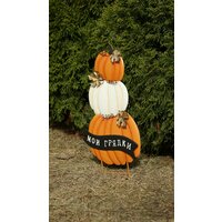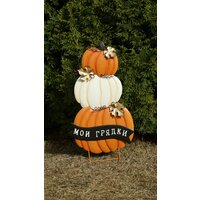 Купить Садовый осенний декор для грядки Три тыквы «Мои грядки», оранжевый-белый-оранжевый (вар.1) с доставкой по всей России.