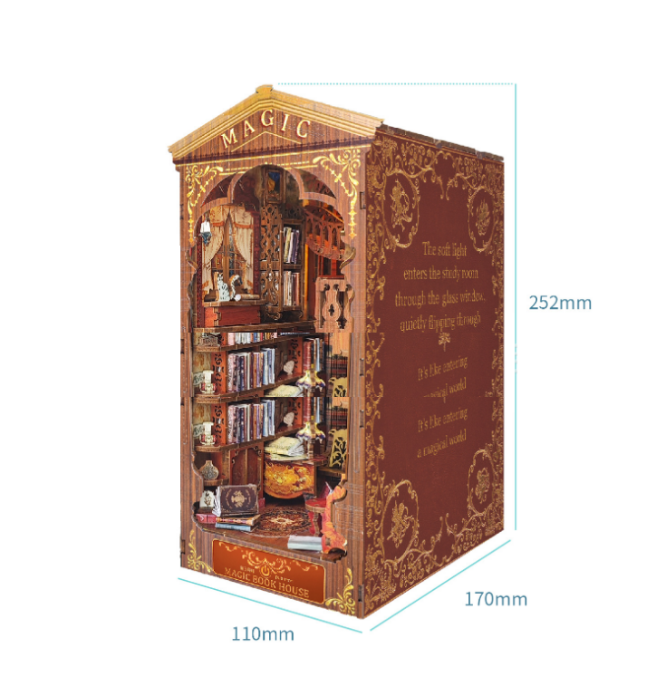 Декоративная деревянная подставка с подсветкой, вставка между книг Y237222, конструктор Book Nook, конструкция собери сам, идеальный подарок для сестры, брата, племянницы, племенника, подруги, тематика волшебная библиотека, купить недорого в интернет магазине, подарок на день рождения, новый год, новоселье. Книжный уголок который вы сможете собрать и раскрасить сами. Комплект для сборки BOOK NOOK, создаст волшебную атмосферу и прекрасно подчеркнет вашу коллекцию книг про юного волшебника. Отличный подарок для Поттероманов. Предназначен для хранения книг любого размера. Держатель для книг идеально подходит для организации хранения книг, учебников, дисков, журналов, документов на книжной полке или рабочем столе. Подставка для книг станет стильным аксессуаром Вашего интерьера, благодаря уникальному дизайну. Кроме того, книжный ограничитель станет прекрасным подарком для книголюбов и любителей лаконичных вещей в скандинавском стиле. Габариты: вес 700гр размер упаковки 24,5х11,5х17см.