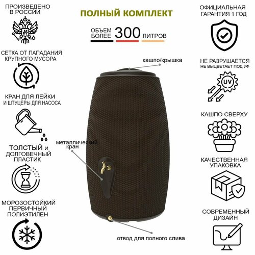 Декоративная емкость Country 300 литров - стильное решение для сбора дождевой воды. Изделие выполнено в текстуре переплетённого ротанга, из которого часто производят уличную дачную мебель или предметы интерьера.