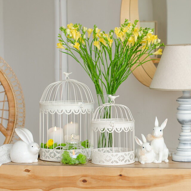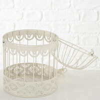 Основа для декора Фредерика пробудит вашу фантазию! Винтажная птичья клетка в элегантном белоснежном оттенке с тонкими прутьями и кружевным плетением выглядит невероятно воздушно и сентиментально. Она может стать потрясающим украшением интерьера как в своем первозданном виде, так и дополненная различными аксессуарами. Повяжите на прутья красивые ленточки, закрепите на них дизайнерские прищепки, поместите внутрь клетки искусственные веточки или пестрые сухоцветы, небольшие игрушки и наслаждайтесь романтичным райским уголком прямо у вас дома. Основа для композиций может сыграть роль даже эпатажного подсвечника, достаточно лишь расположить за прутьями несколько свечей-столбиков.