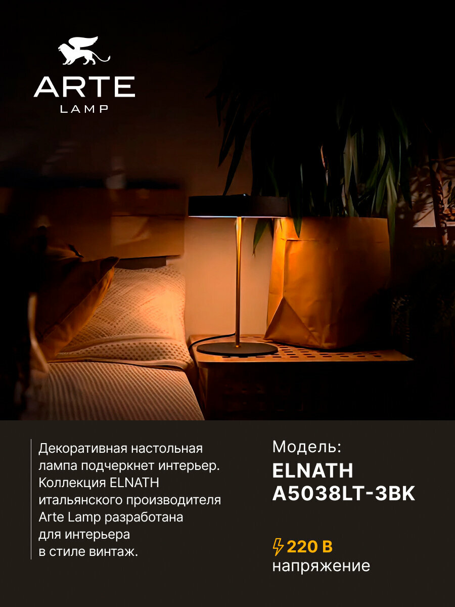 Декоративная настольная лампа Arte Lamp ELNATH A5038LT-3BK / G9 / 3х3Вт / IP20 / чёрный, медный: сравнение цен, характеристики, фото, актуальное наличие и цены.