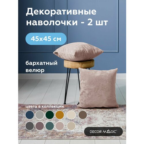 Комплект наволочек от DECOR MAGIC для создания идеального уюта в вашем доме! Наши наволочки декоративные станут изысканным акцентом в интерьере, добавив стиля и комфорта. Наволочки декоративные 45х45 отлично подойдут для декоративных подушек 40х40 и 45*45. Каждая наволочка на подушку декоративную выполнена из высококачественного мебельного велюра, что придает текстуре мягкость и роскошь. Все чехлы на подушки диванные имеют удобную застежку на молнии, что облегчает процесс надевания и снятия чехлов. Эта функция особенно ценна для чехла на подушку, так как позволяет легко поддерживать чистоту и порядок. Вы можете выбрать из множественных моделей и оттенков: декоративные наволочки 45х45, которые идеально впишутся в любой стиль интерьера. Комплект наволочек декоративных включает в себя два чехла на молнии, что позволяет вам легко и быстро менять облик вашего дивана или кресла. Идеальный выбор для тех, кто хочет обновить свой интерьер и добавить нотки элегантности. Закажите набор наволочек для подушек и наслаждайтесь комфортом вместе с стилем! Дизайны разработаны профессионалами и прекрасно сочетаются с другим текстильным декором от DECOR MAGIC. Соберите полное интерьерное решение без труда и хлопот. Цвет товара может не совпадать с представленным на фото в связи с индивидуальными особенностями цветопередачи и яркости монитора. Допустимо отклонение в размере +/- 3 см.