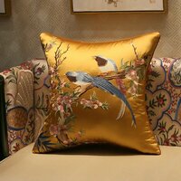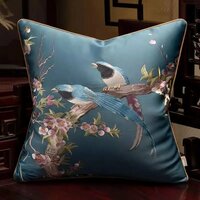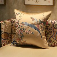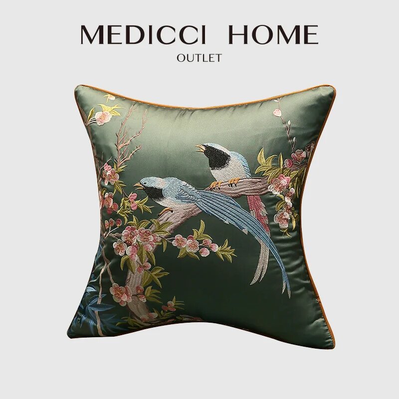 Iterm: Medicci Home Silk Cushion Cover Spring Birds Embroidery Oriental Luxury Upmarket Brocade Pillowcase For Couch Sofa Bed 18x18Inch