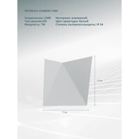 Размеры (высота х ширина х длина): 8 x 17 x 17 см Вес: 0,5 кг Цвет плафона и арматуры: белый и алюминий Количество ламп: 1 (встроенные светодиодные) Мощность: 7 Вт Цветовая температура: 3 000 К Световой поток: 605 лм Класс электробезопасности: II Вид ламп: светодиодные Степень защиты от пыли и воды: IP 54 Индексация цветопередачи: Ra 80 Материал плафона и арматуры: металл Страна производства: Китай Напряжение: 220-240 Вт Срок службы лампы: 50 000 часов