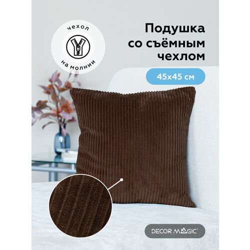 Декоративная подушка DECOR MAGIC со съемным чехлом размером 45х45 см на молнии изготовлена из безопасного гипоаллергенного материала. Внутреннее наполнение - вспененное 100% полиэфирное волокно. В комплектацию входит: съемный декоративный чехол и внутренняя подушка. Декоративная подушка с чехлом на молнии выглядит эстетично, т. к. внутренняя подушка не сбивается и не вылезает. А также это еще и очень удобно, потому что чехол можно просто снять и постирать, выбрав деликатный режим на стиральной машине , температура не более 30 градусов, 600 оборотов. Температура глажения не более 110 С с изнаночной стороны. Подушки DÉCOR MAGIC сделают дизайн комнаты более ярким, индивидуальным и уютным, они незаменимы в поддержании единого стилевого образа. С нами быстро, легко, красиво! Внимание: Технологически допустимые отклонения от заявленного размера +/- 3%, согласно ГОСТ Р 51554-99. Цвет товара может не совпадать с представленным на фото в связи с индивидуальными настройками цветов монитора и его яркости, а так же цвет изделий в одном дизайне, может не совпадать из-за разности фактур.