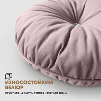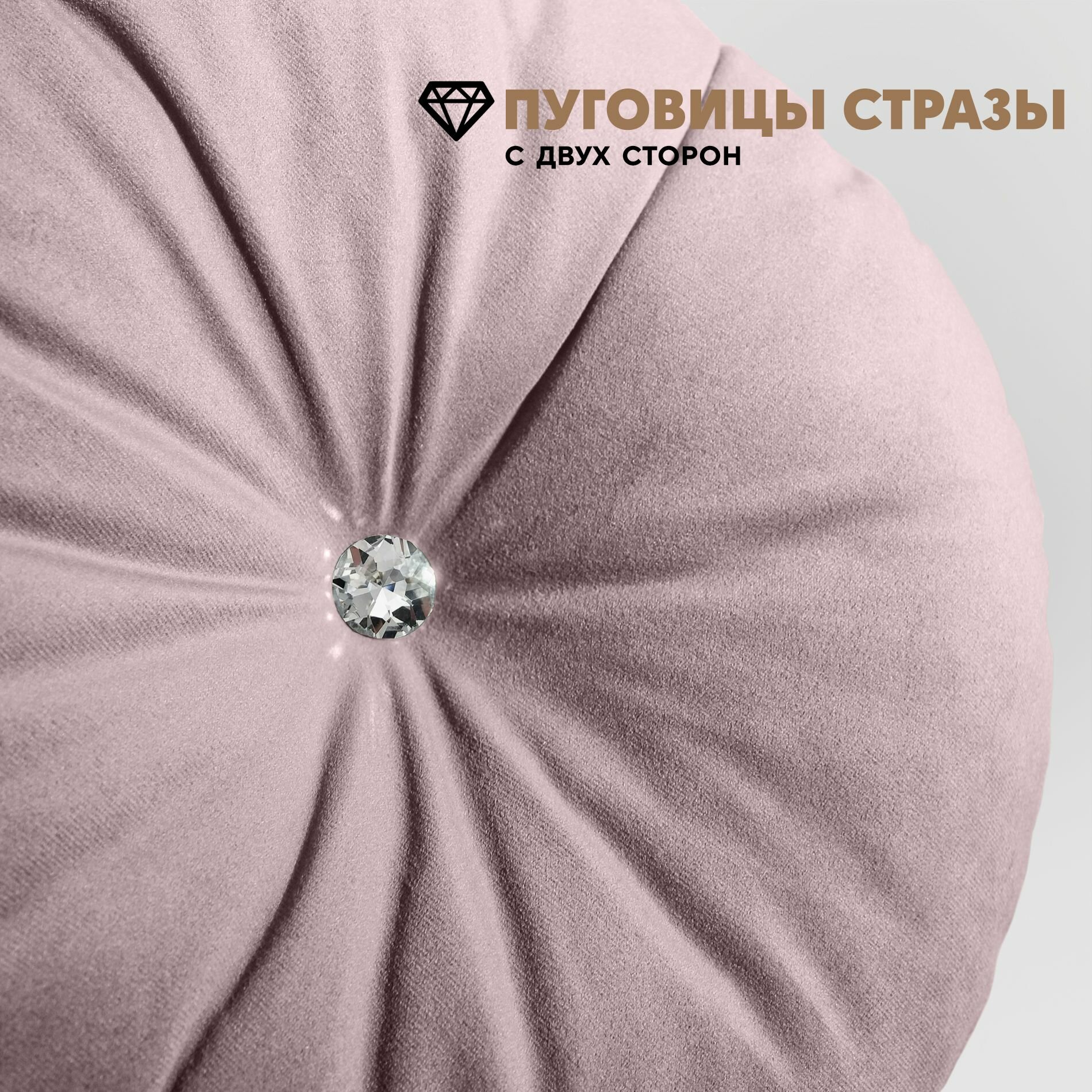 Диаметр подушки: 45см. Наполнитель подушки: гипоаллергенный холофайбер (быстро сохнет и не скатывается со временем при надлежащем уходе). Пуговицы - стразы с двух сторон круглой подушки. Чехол несъемный.