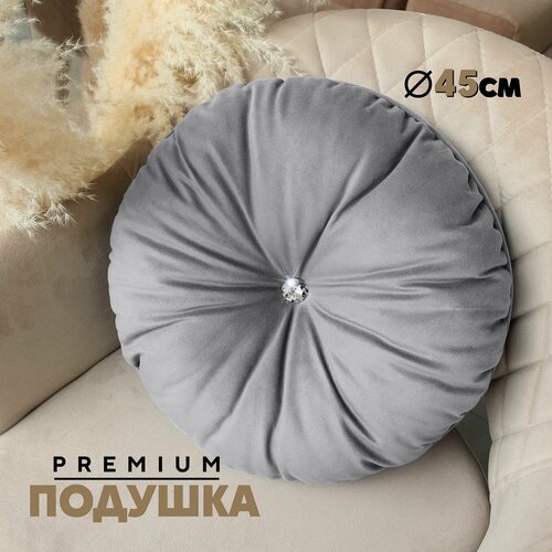 Диаметр подушки: 45см. Наполнитель подушки: гипоаллергенный холофайбер (быстро сохнет и не скатывается со временем при надлежащем уходе). Пуговицы - стразы с двух сторон круглой подушки. Чехол несъемный.