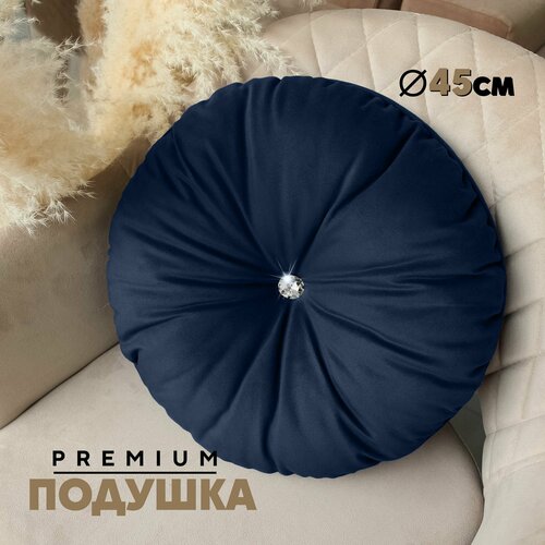 Диаметр подушки: 45см. Наполнитель подушки: гипоаллергенный холофайбер (быстро сохнет и не скатывается со временем при надлежащем уходе). Пуговицы - стразы с двух сторон круглой подушки. Чехол несъемный.
