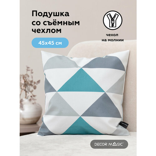 Декоративная подушка DECOR MAGIC со съемным чехлом размером 45х45 см на молнии изготовлена из безопасного гипоаллергенного материала. Внутреннее наполнение - вспененное 100% полиэфирное волокно. В комплектацию входит: съемный декоративный чехол и внутренняя подушка. Декоративная подушка с чехлом на молнии выглядит эстетично, т. к. внутренняя подушка не сбивается и не вылезает. А также это еще и очень удобно, потому что чехол можно просто снять и постирать, выбрав деликатный режим на стиральной машине , температура не более 30 градусов, 600 оборотов. Температура глажения не более 110 С с изнаночной стороны. Подушки DÉCOR MAGIC сделают дизайн комнаты более ярким, индивидуальным и уютным, они незаменимы в поддержании единого стилевого образа. С нами быстро, легко, красиво! Внимание: Технологически допустимые отклонения от заявленного размера +/- 3%, согласно ГОСТ Р 51554-99. Цвет товара может не совпадать с представленным на фото в связи с индивидуальными настройками цветов монитора и его яркости, а так же цвет изделий в одном дизайне, может не совпадать из-за разности фактур.