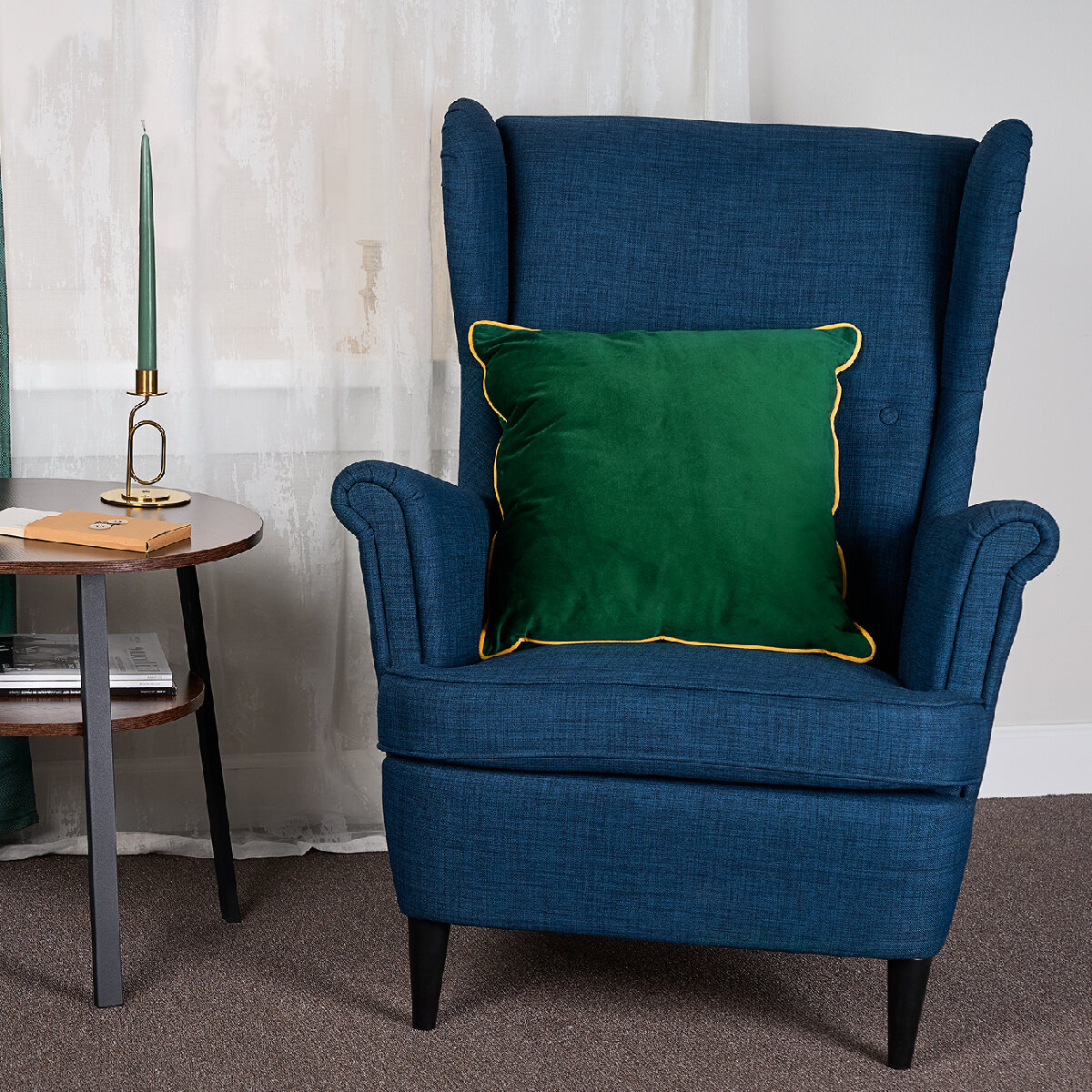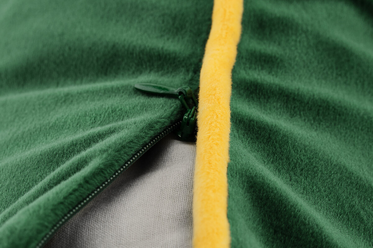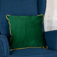 Вельветовая декоративная подушка 50х50 см Shangri La квадратная, зеленого цвета с желтым вельветовым кантом. Однотонная, без рисунка. Съемный чехол на подушке легко застегивается и расстегивается при помощи потайной молнии, расположенной по нижнему краю наволочки и незаметной в застегнутом виде. Внутри – подушка с холлофайбером, которая при правильном уходе не проминается и не деформируется. Является частью коллекции Shangri La, с помощью которой легко создать райский, вечноцветущий уголок в интерьере спальни и гостиной. Серия представлена в Likemyhome в полном составе.