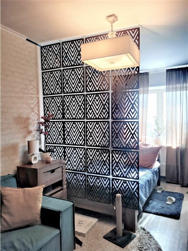 Декоративная подвесная модульная перегородка для зонирования комнаты. Потолочное крепление. Цвет венге. Высота 240 см ширина 160 см. Ширма для комнаты.