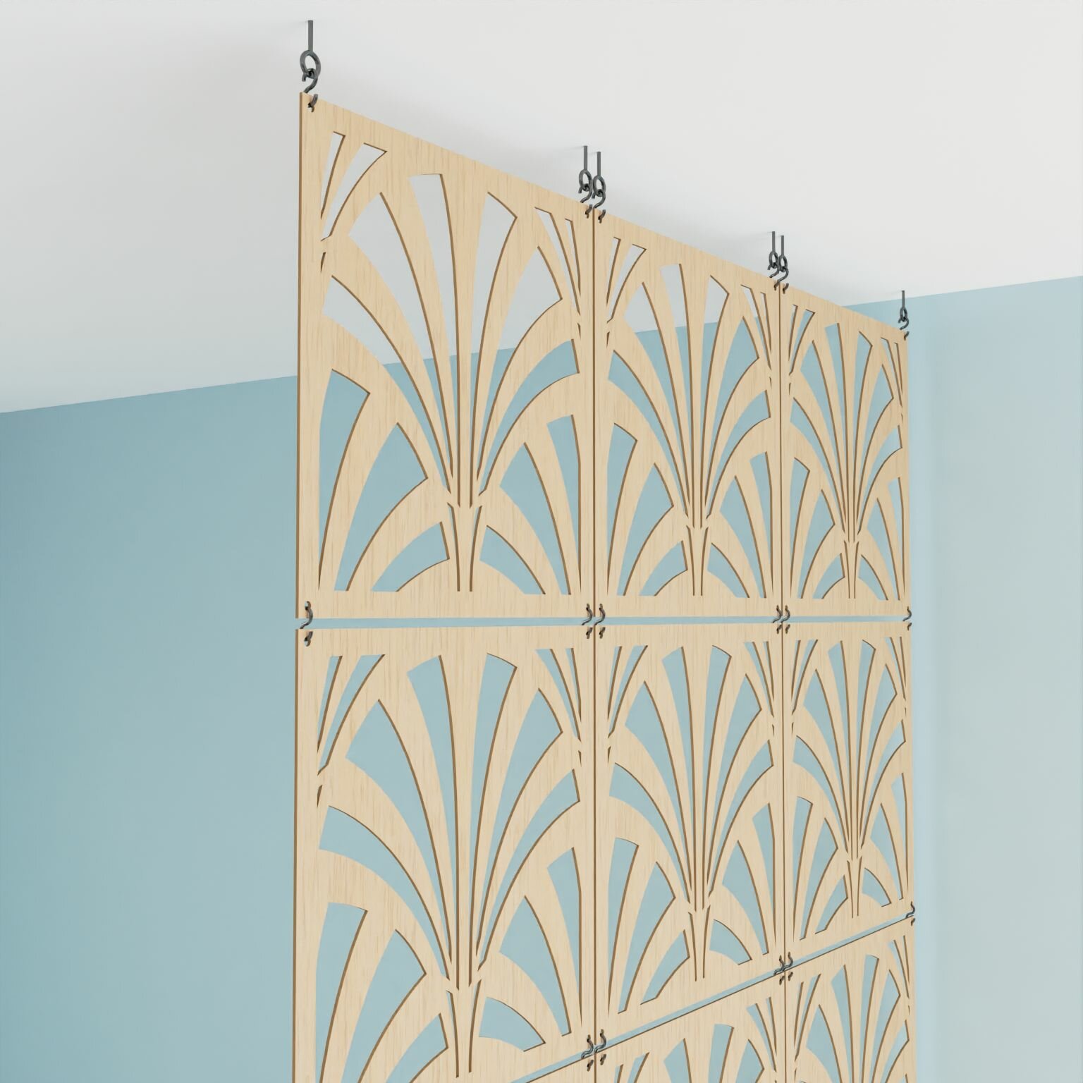 Декоративная подвесная модульная перегородка для зонирования комнаты. Потолочное крепление. Высота 240 см ширина 200 см. Комплект 30 квадратов+крепеж. Цвет бежевый.