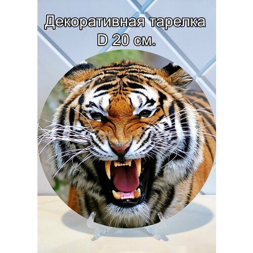 Декоративная тарелка "Тигр" — это стильный элемент декора для вашего дома, который добавит оригинальности и уюта в интерьер. Изготовленная с тщательной проработкой деталей, данная тарелка станет центральным акцентом на вашем столе или стене.