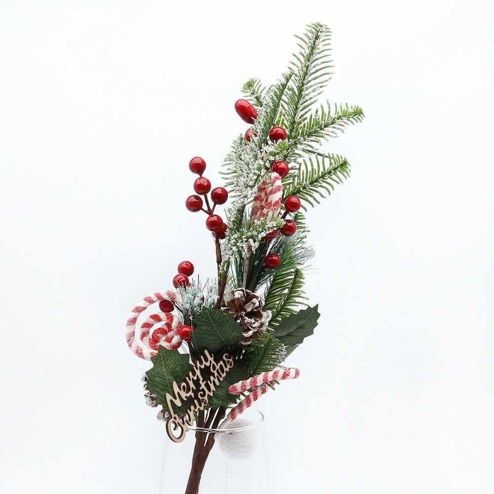 Купить Декоративная ветка айрис капля, сосновая с шишками и конфетами, 46 см, 1 шт (XY22-009) с доставкой по всей России.