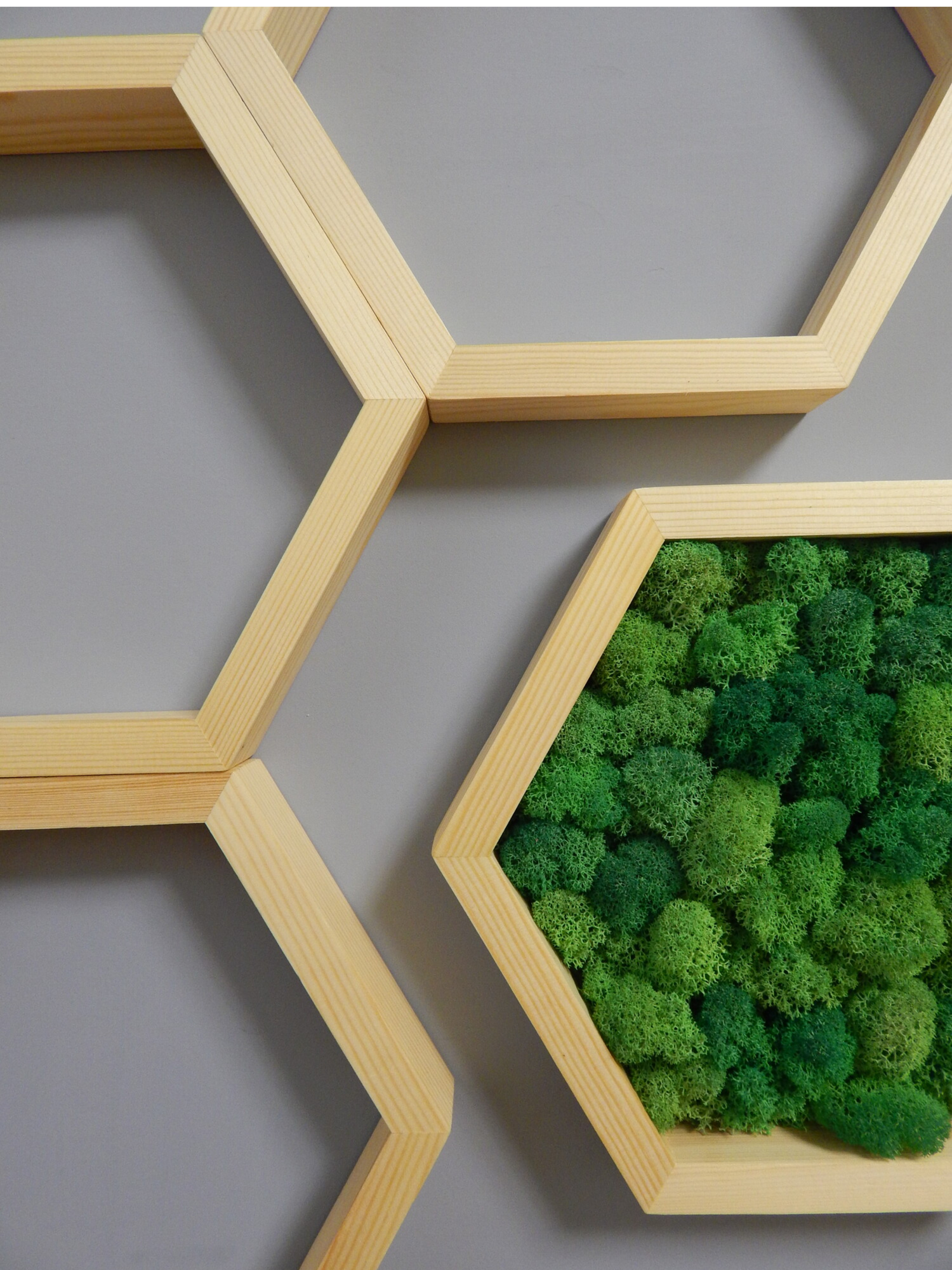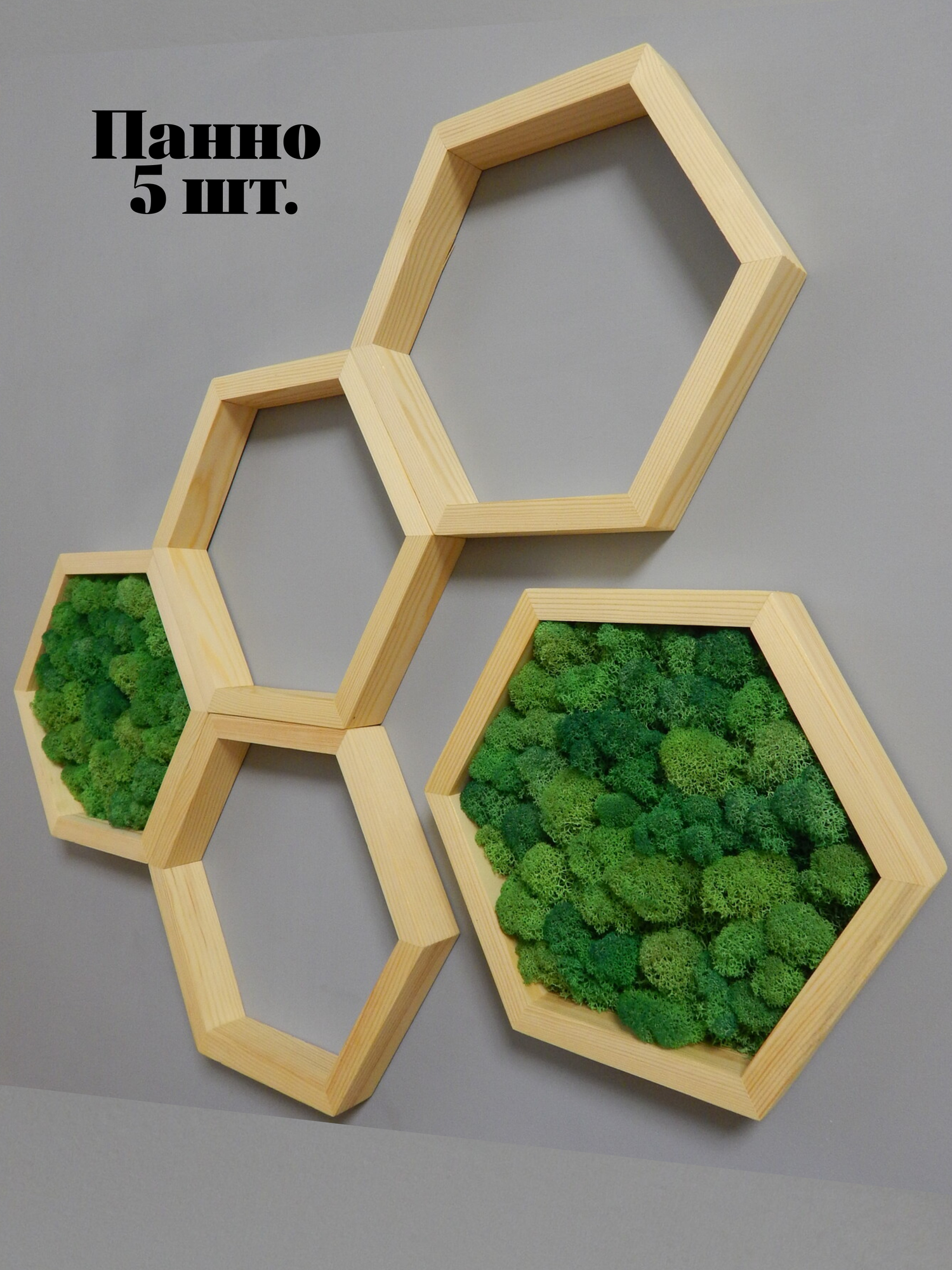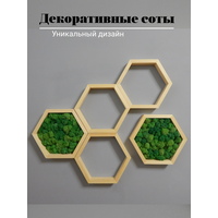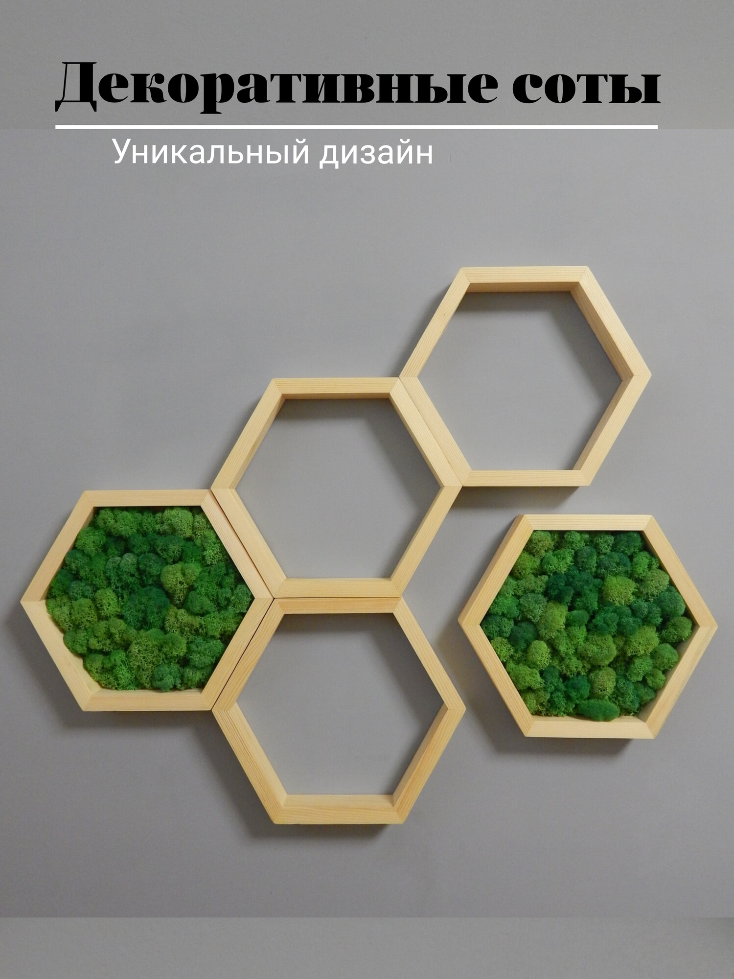 Декоративное деревянное панно из сот. В комплекте 3шт. без мха, 2шт, со мхом, крепеж. Материал массив сосны, окрашены бесцветным защитным маслом для дерева. Ручная работа. Каждая сота самостоятельна и не связана с другой, т. е. их можно расположить на стене в любом порядке и создать своё декоративное дизайнерское панно. Деревянные соты - это стильный и современный способ организации пространства в доме или офисе. Они прекрасно подходят для украшения гостиной, спальни, кабинета, детской комнаты или кухни. Стильно и гармонично впишутся в любой интерьер, создадут комфорт и уют в вашем доме.