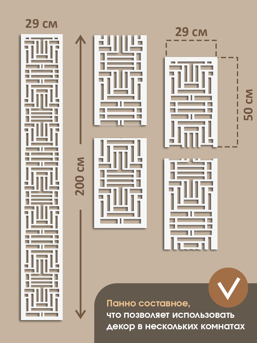 Составное модульное настенное панно от RADA-decor из дерева – это универсальный декор на стену, а так же идеальный способ украсить интерьер любого дома! Высококачественные материалы, используемые при изготовлении панно, 100% экологичны и гипоаллергенны. Для производства предметов декора для дома используются плиты из лхдф, которые значительно прочнее, чем ДСП и гораздо легче, чем массив. В зависимости от поверхности стен для крепления украшения на стену можно использовать двухсторонний скотч, жидкие гвозди или горячий клей. При покрытии деревянной основы мы используем акриловую краску на водной основе, она не имеет химического неприятного запаха и защищает древесину от неблагоприятных внешних условий. Такие декорации настенные оживляют пространство и являются идеальным завершающим элементом для стильного интерьера, а также их можно использовать как свадебные декорации. 3 d картина из дерева на стену добавляет цвет и красоту в любое помещение, а также предоставляет огромное количество возможностей для дизайна. Вы можете использовать настенное украшение для дома в качестве добавления дополнительных элементов декора или как самостоятельное украшение интерьера вашего дома - повесьте пано в кухню или в гостиную, в кабинет или прихожую. Декор на стену из дерева замечательно впишется в детской комнате. Деревянное стеновое украшение отлично подойдет для фотозоны, оно украсит ваши памятные фотокарточки. Декорация настенная деревянная прекрасно впишется в интерьер комнаты, кухни или дачного дома. Деревянная 3д картина имеет составную структуру и также круто будет смотреться в нежилых пространствах - на стене рабочего офиса, в зале ресторана, или в зоне ресепшена салона красоты, медицинского центра и тд. Деревянные панно встраиваются под любой тип интерьера - современный лофт, классический, прованс, изысканную эклектику. Декор для дома и уюта в виде деревянного панно станет прекрасным подарком для любого повода. Например, настенное панно в спальню будет органичным подарком на свадьбу, мужчине или женщине, прекрасный подарок на новый год. Картина из дерева порадует всех любителей декораций. Современное дизайнерское решение для интерьера - деревянное панно украсит любую квартиру и станет отличным подарком для дачи. Перед отправкой, каждое полотно проходит процедуру контроля качества, что исключает возможность брака. Мы гарантируем ваше удовлетворение от покупки, а также даем гарантию на все свои товары.
