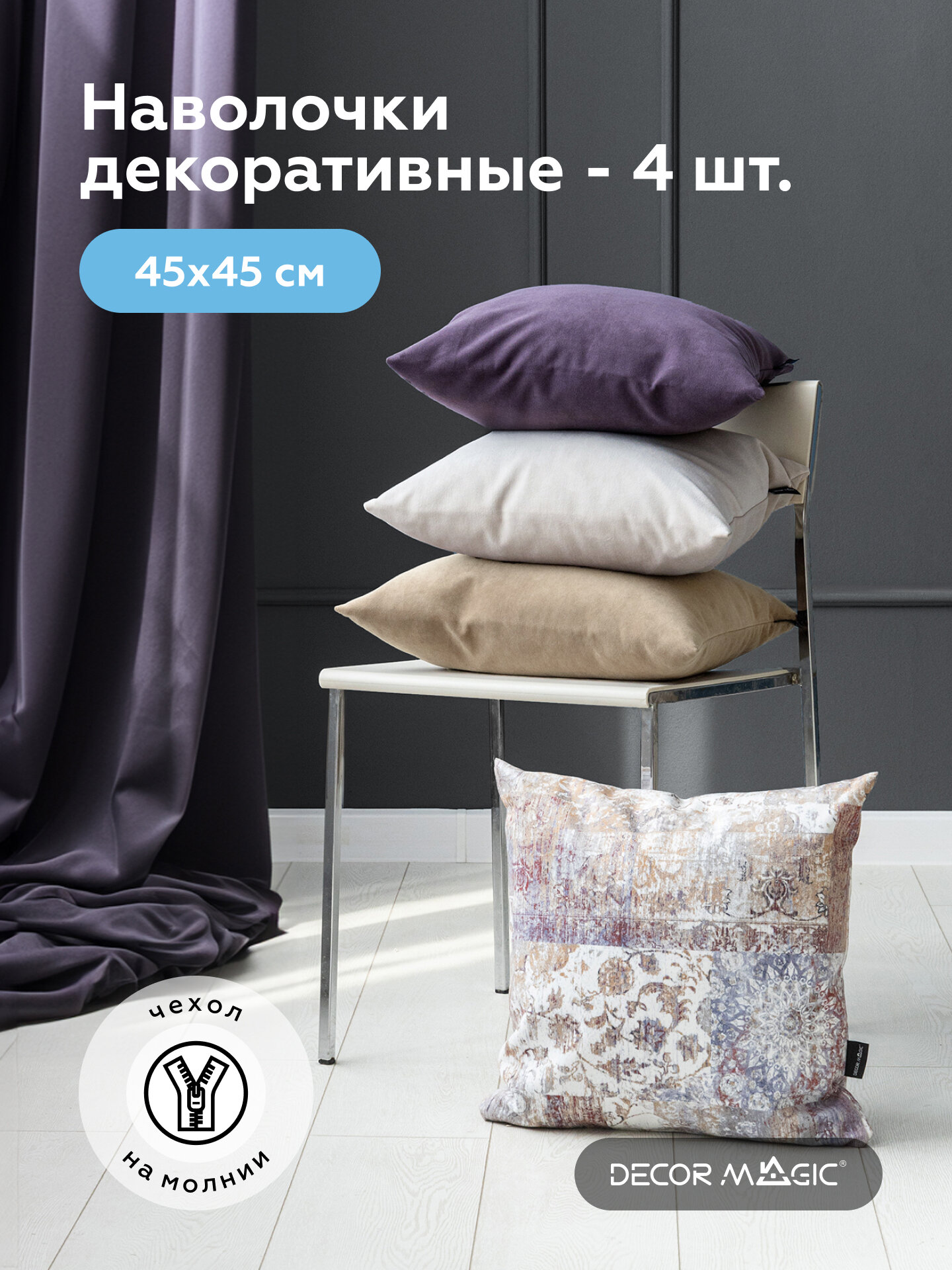 Купить Декоративные наволочки на подушки 45х45 VERDI, чехол на молнии 4 шт в комплекте с доставкой по всей России.
