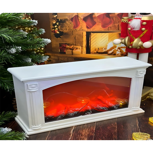 Купить Декоративный камин, новогодний камин с эффектом пламени, новогодний светильник камин для дома и квартиры, от usb и батареек, прямоугольный, белый с доставкой по всей России.